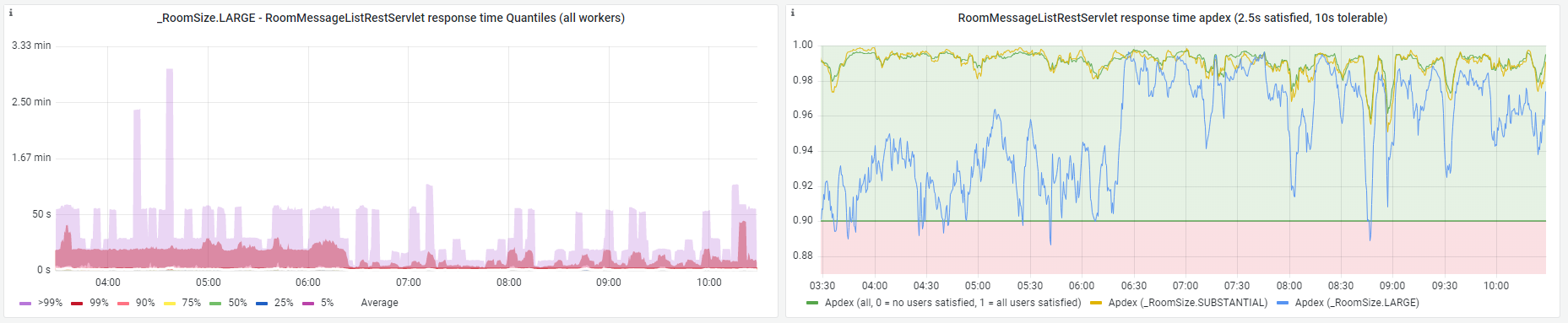Note that the graph from the first image, and the second graph from the second image are apdexes, which is a measure that shows improvement when it goes up (as opposed to e.g. response times, which improve when they go down).